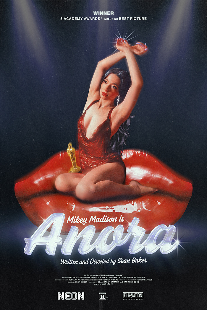 Alternative poster for Sean Bakers’s Anora (2024). Starring Mikey Madison, Yura Borísov, Mark Eidelstein and Karren Karagulián.
