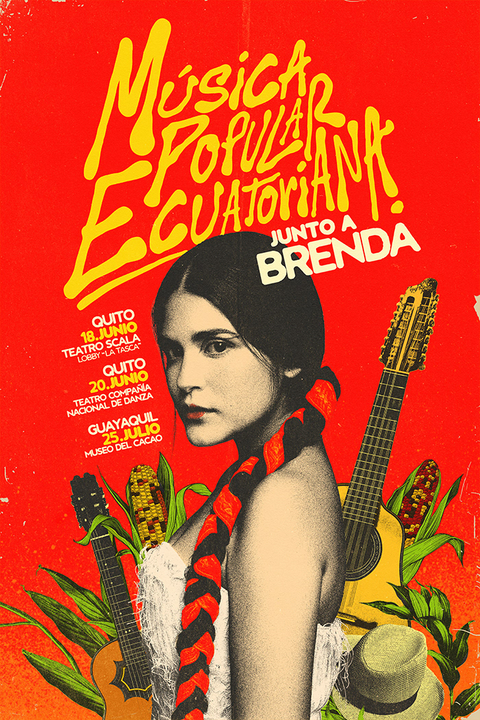 Poster design and digital collage. “A celebration of collective musical memory and living roots. Featuring pasillos, boleros, waltzes, and sanjuanitos.”