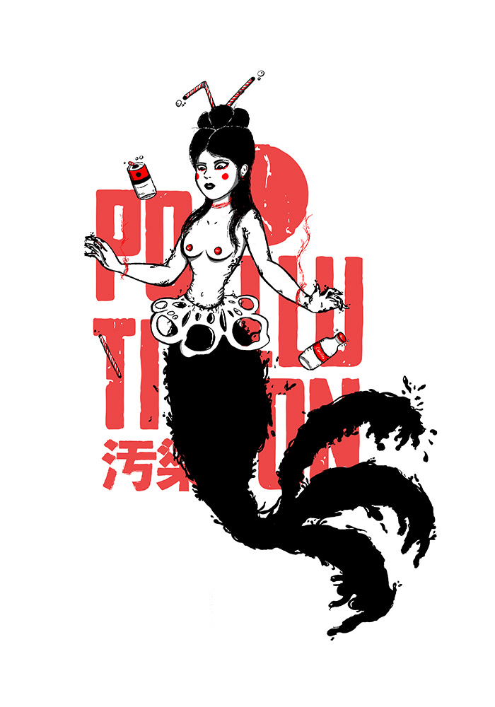 Illustration about ocean pollution.