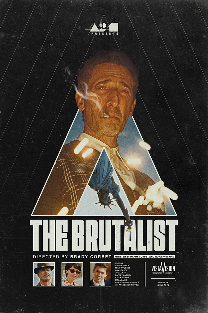 Alternative poster for Brady Corbet’s The Brutalist (2024). Starring Adrien Brody, Felicity Jones, Guy Pearce, and Joe Alwyn.